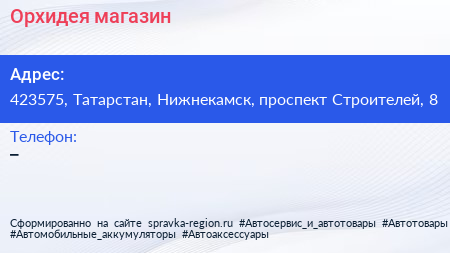 Орхидея, магазин по адресу 423575, Татарстан, Нижнекамск, проспект Строителей, 8 в дальнейшем Организация, размещена в следующих категориях: