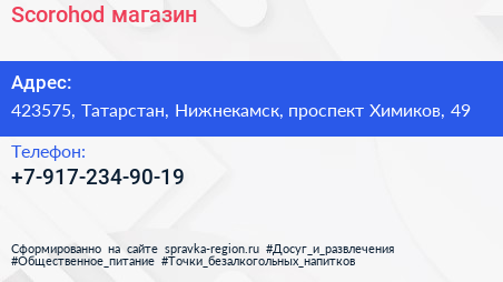Scorohod, магазин по адресу 423575, Татарстан, Нижнекамск, проспект Химиков, 49 в дальнейшем Организация, размещена в следующих категориях: