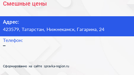 Смешные цены по адресу 423579, Татарстан, Нижнекамск, Гагарина, 24 в дальнейшем Организация, размещена в следующих категориях: