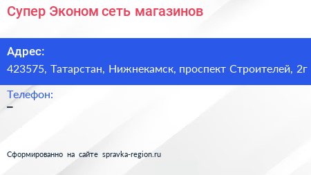 Супер Эконом, сеть магазинов по адресу 423575, Татарстан, Нижнекамск, проспект Строителей, 2г в дальнейшем Организация, размещена в следующих категориях: