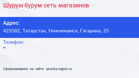 Шурум бурум, сеть магазинов по адресу 423582, Татарстан, Нижнекамск, Гагарина, 25 в дальнейшем Организация, размещена в следующих категориях: