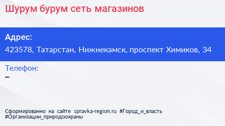 Шурум бурум, сеть магазинов по адресу 423578, Татарстан, Нижнекамск, проспект Химиков, 34 в дальнейшем Организация, размещена в следующих категориях: