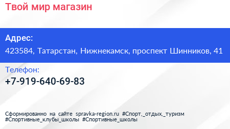 Твой мир, магазин по адресу 423584, Татарстан, Нижнекамск, проспект Шинников, 41 в дальнейшем Организация, размещена в следующих категориях:
