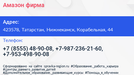 Амазон, фирма по адресу 423578, Татарстан, Нижнекамск, Корабельная, 44 в дальнейшем Организация, размещена в следующих категориях: