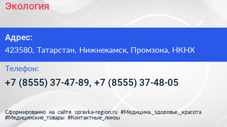 Экология по адресу 423580, Татарстан, Нижнекамск, Промзона, НКНХ в дальнейшем Организация, размещена в следующих категориях: