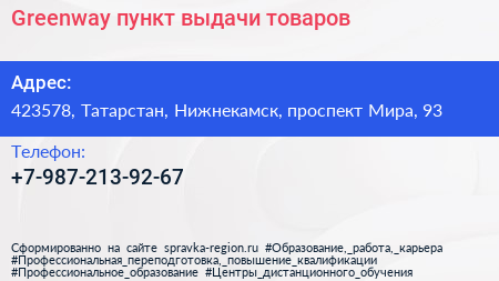 Greenway, пункт выдачи товаров по адресу 423578, Татарстан, Нижнекамск, проспект Мира, 93 в дальнейшем Организация, размещена в следующих категориях: