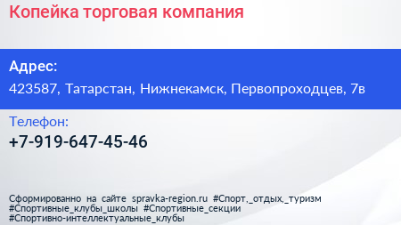 Копейка, торговая компания по адресу 423587, Татарстан, Нижнекамск, Первопроходцев, 7в в дальнейшем Организация, размещена в следующих категориях: