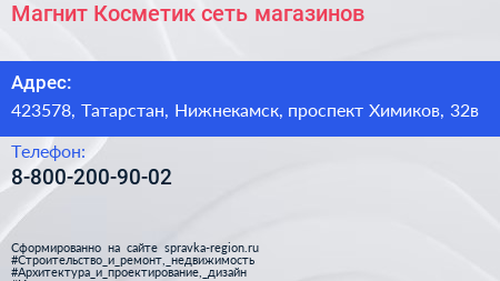 Магнит Косметик, сеть магазинов по адресу 423578, Татарстан, Нижнекамск, проспект Химиков, 32в в дальнейшем Организация, размещена в следующих категориях: