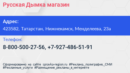 Русская Дымка, магазин по адресу 423582, Татарстан, Нижнекамск, Менделеева, 23а в дальнейшем Организация, размещена в следующих категориях: