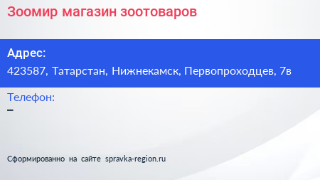 Зоомир, магазин зоотоваров по адресу 423587, Татарстан, Нижнекамск, Первопроходцев, 7в в дальнейшем Организация, размещена в следующих категориях: