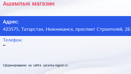 Ашамлык, магазин по адресу 423575, Татарстан, Нижнекамск, проспект Строителей, 2Б в дальнейшем Организация, размещена в следующих категориях: