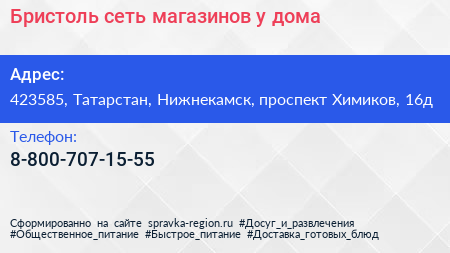 Бристоль, сеть магазинов у дома по адресу 423585, Татарстан, Нижнекамск, проспект Химиков, 16д в дальнейшем Организация, размещена в следующих категориях:
