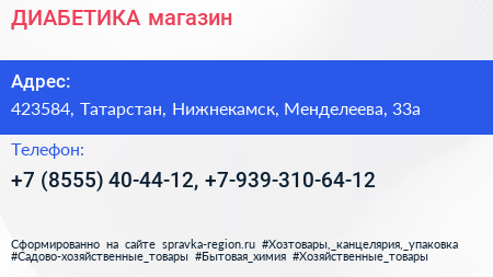 ДИАБЕТИКА, магазин по адресу 423584, Татарстан, Нижнекамск, Менделеева, 33а в дальнейшем Организация, размещена в следующих категориях: