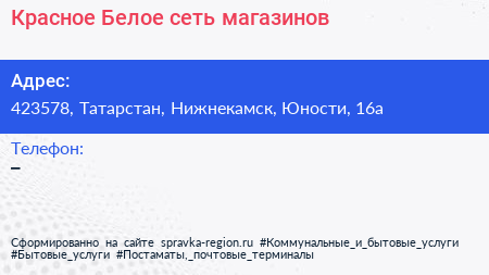 Красное & Белое, сеть магазинов по адресу 423578, Татарстан, Нижнекамск, Юности, 16а в дальнейшем Организация, размещена в следующих категориях:
