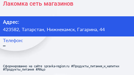 Лакомка, сеть магазинов по адресу 423582, Татарстан, Нижнекамск, Гагарина, 44 в дальнейшем Организация, размещена в следующих категориях:
