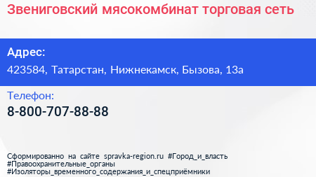 Звениговский мясокомбинат, торговая сеть по адресу 423584, Татарстан, Нижнекамск, Бызова, 13а в дальнейшем Организация, размещена в следующих категориях: