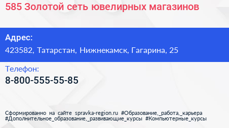 585 Золотой, сеть ювелирных магазинов по адресу 423582, Татарстан, Нижнекамск, Гагарина, 25 в дальнейшем Организация, размещена в следующих категориях: