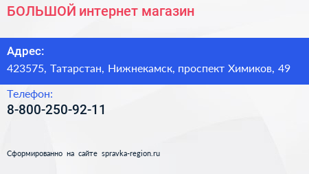 БОЛЬШОЙ, интернет-магазин по адресу 423575, Татарстан, Нижнекамск, проспект Химиков, 49 в дальнейшем Организация, размещена в следующих категориях:
