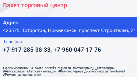 Бэхет, торговый центр по адресу 423575, Татарстан, Нижнекамск, проспект Строителей, 2г в дальнейшем Организация, размещена в следующих категориях: