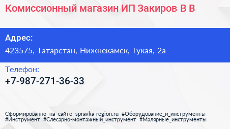 Комиссионный магазин, ИП Закиров В.В. по адресу 423575, Татарстан, Нижнекамск, Тукая, 2а в дальнейшем Организация, размещена в следующих категориях: