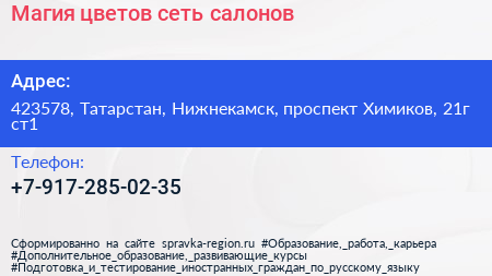 Магия цветов, сеть салонов по адресу 423578, Татарстан, Нижнекамск, проспект Химиков, 21г ст1 в дальнейшем Организация, размещена в следующих категориях: