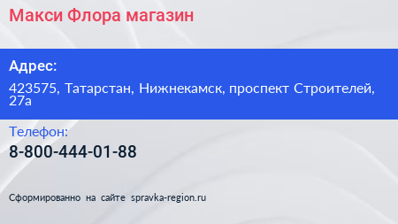 Макси Флора, магазин по адресу 423575, Татарстан, Нижнекамск, проспект Строителей, 27а в дальнейшем Организация, размещена в следующих категориях: