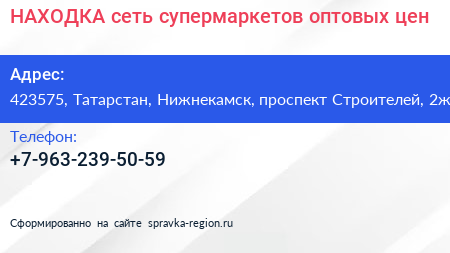 НАХОДКА, сеть супермаркетов оптовых цен по адресу 423575, Татарстан, Нижнекамск, проспект Строителей, 2ж в дальнейшем Организация, размещена в следующих категориях: