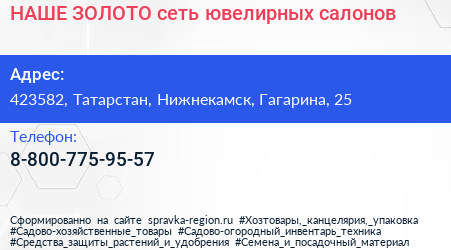 НАШЕ ЗОЛОТО, сеть ювелирных салонов по адресу 423582, Татарстан, Нижнекамск, Гагарина, 25 в дальнейшем Организация, размещена в следующих категориях: