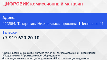 ЦИФРОВИК, комиссионный магазин по адресу 423584, Татарстан, Нижнекамск, проспект Шинников, 41 в дальнейшем Организация, размещена в следующих категориях: