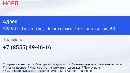 НОЕЛ по адресу 423587, Татарстан, Нижнекамск, Чистопольская, 68 в дальнейшем Организация, размещена в следующих категориях:
