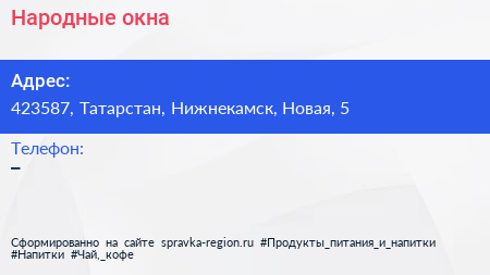 Народные окна по адресу 423587, Татарстан, Нижнекамск, Новая, 5 в дальнейшем Организация, размещена в следующих категориях: