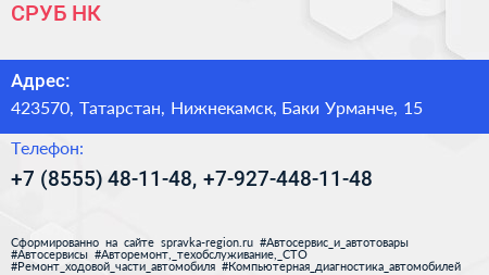 СРУБ НК по адресу 423570, Татарстан, Нижнекамск, Баки Урманче, 15 в дальнейшем Организация, размещена в следующих категориях: