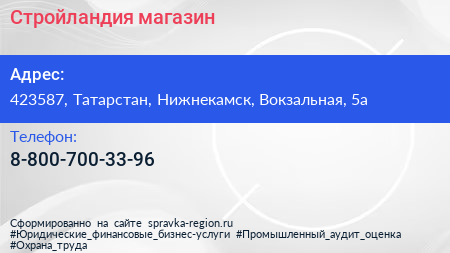 Стройландия, магазин по адресу 423587, Татарстан, Нижнекамск, Вокзальная, 5а в дальнейшем Организация, размещена в следующих категориях: