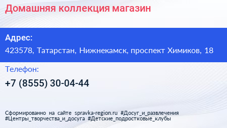Домашняя коллекция, магазин по адресу 423578, Татарстан, Нижнекамск, проспект Химиков, 18 в дальнейшем Организация, размещена в следующих категориях: