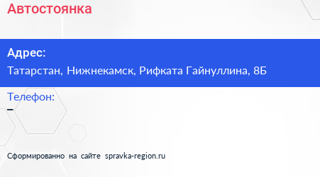 Автостоянка по адресу Татарстан, Нижнекамск, Рифката Гайнуллина, 8Б в дальнейшем Организация, размещена в следующих категориях: