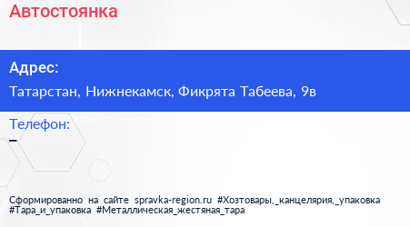 Автостоянка по адресу Татарстан, Нижнекамск, Фикрята Табеева, 9в в дальнейшем Организация, размещена в следующих категориях: