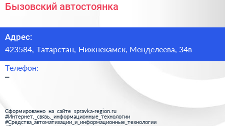 Бызовский, автостоянка по адресу 423584, Татарстан, Нижнекамск, Менделеева, 34в в дальнейшем Организация, размещена в следующих категориях: