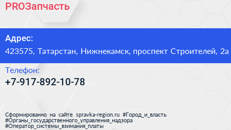 PROЗапчасть по адресу 423575, Татарстан, Нижнекамск, проспект Строителей, 2а в дальнейшем Организация, размещена в следующих категориях: