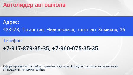 Автолидер, автошкола по адресу 423578, Татарстан, Нижнекамск, проспект Химиков, 36 в дальнейшем Организация, размещена в следующих категориях: