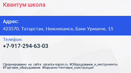 Квантум, школа по адресу 423570, Татарстан, Нижнекамск, Баки Урманче, 15 в дальнейшем Организация, размещена в следующих категориях: