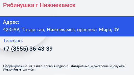 Рябинушка, г. Нижнекамск по адресу 423599, Татарстан, Нижнекамск, проспект Мира, 39 в дальнейшем Организация, размещена в следующих категориях:
