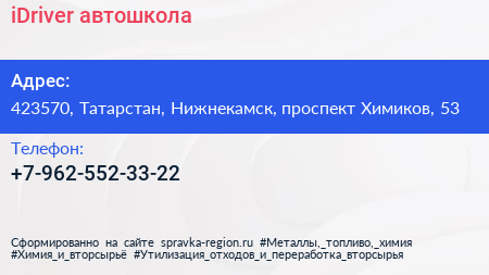 iDriver, автошкола по адресу 423570, Татарстан, Нижнекамск, проспект Химиков, 53 в дальнейшем Организация, размещена в следующих категориях: