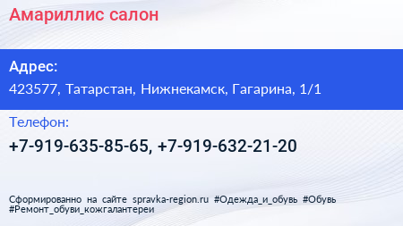 Амариллис, салон по адресу 423577, Татарстан, Нижнекамск, Гагарина, 1/1 в дальнейшем Организация, размещена в следующих категориях: