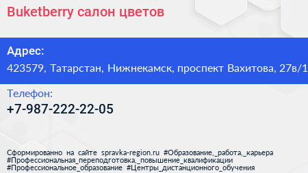 Buketberry, салон цветов по адресу 423579, Татарстан, Нижнекамск, проспект Вахитова, 27в/1 в дальнейшем Организация, размещена в следующих категориях: