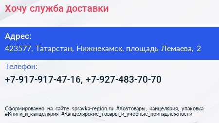 Хочу, служба доставки по адресу 423577, Татарстан, Нижнекамск, площадь Лемаева, 2 в дальнейшем Организация, размещена в следующих категориях: