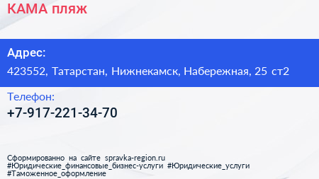 КАМА, пляж по адресу 423552, Татарстан, Нижнекамск, Набережная, 25 ст2 в дальнейшем Организация, размещена в следующих категориях: