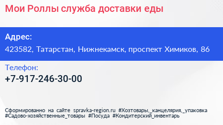 Мои Роллы, служба доставки еды по адресу 423582, Татарстан, Нижнекамск, проспект Химиков, 86 в дальнейшем Организация, размещена в следующих категориях: