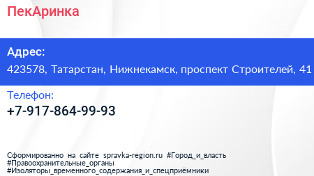 ПекАринка по адресу 423578, Татарстан, Нижнекамск, проспект Строителей, 41 в дальнейшем Организация, размещена в следующих категориях:
