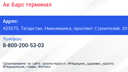 Ак Барс, терминал по адресу 423575, Татарстан, Нижнекамск, проспект Строителей, 10 в дальнейшем Организация, размещена в следующих категориях: