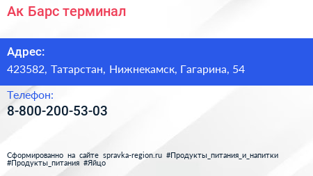 Ак Барс, терминал по адресу 423582, Татарстан, Нижнекамск, Гагарина, 54 в дальнейшем Организация, размещена в следующих категориях: